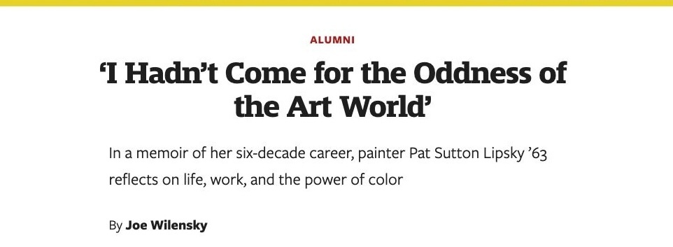 “How did Pat Lipsky pull off the near-impossible feat of breaking into the hyper-macho downtown art world? She tells us in Brightening Glance. With this memoir, Lipsky proves that she’s as brilliant, energetic, and brave a writer as she is a painter.”